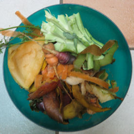 Right:Pear peel & core (yum stewed pears!), carrot peel.